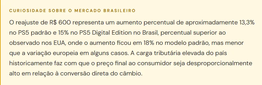 Vale lembrar que o PS5 no Brasil nunca foi vendido com base na simples conversão cambial dos valores em dólar.