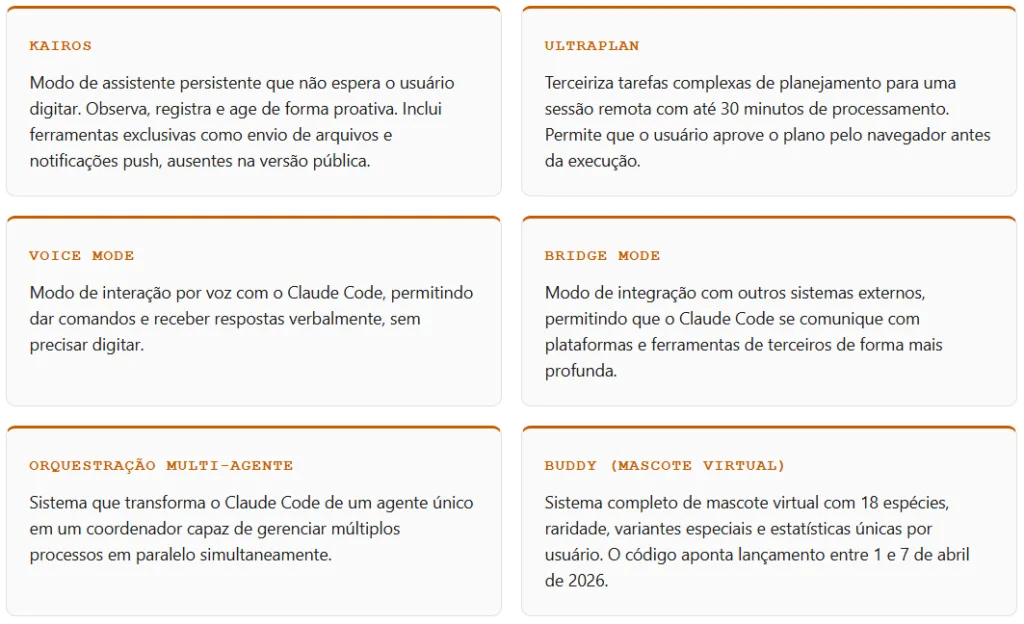 “O código injeta no sistema uma instrução direta: não mencione nomes internos de modelos, não cite números de versões não lançadas, não use a expressão ‘Claude Code’, não revele que você é uma IA.”Fábio Akita, em análise do código vazado publicada em seu blog — AkitaOnRails.com, 31/03/2026