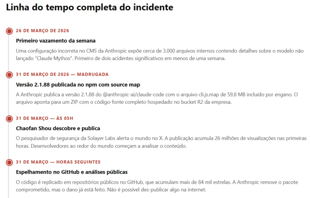 “Dois vazamentos acidentais significativos em menos de uma semana levantam questões sobre a higiene de lançamento em uma empresa cujas ferramentas são ativamente utilizadas para escrever e distribuir código em escala.”Bitcoin News, análise do incidente — Bitcoin News, 31/03/2026